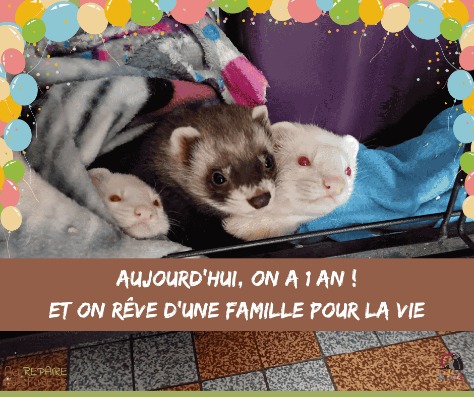 Ces furets sont à adopter au Refuge du Repaire des Furets, situé à la Roche Blanche, entre Nantes et Angers (Ouest de la France), avec l’association Il court, il court le furet.